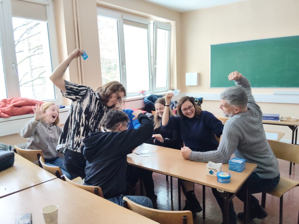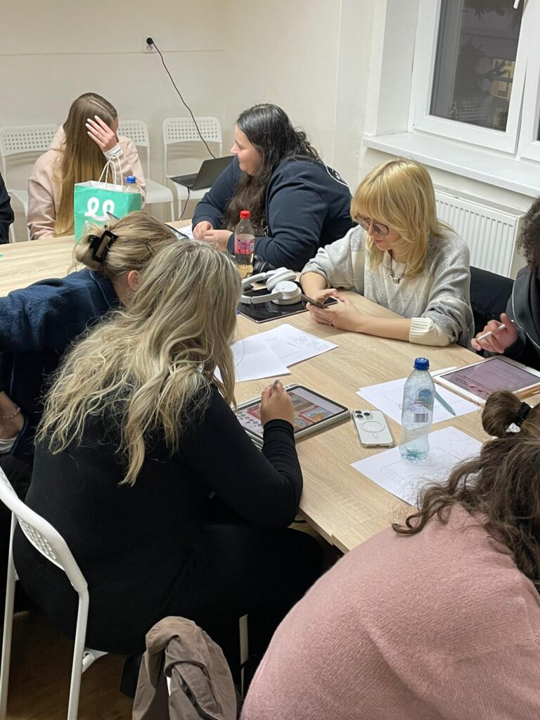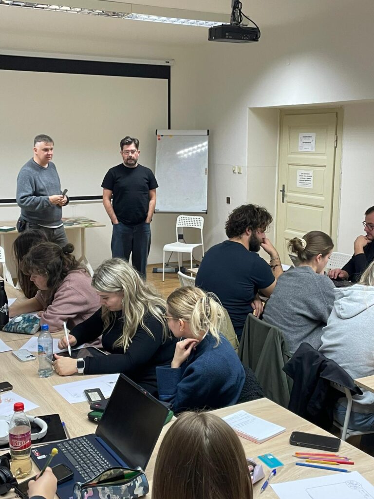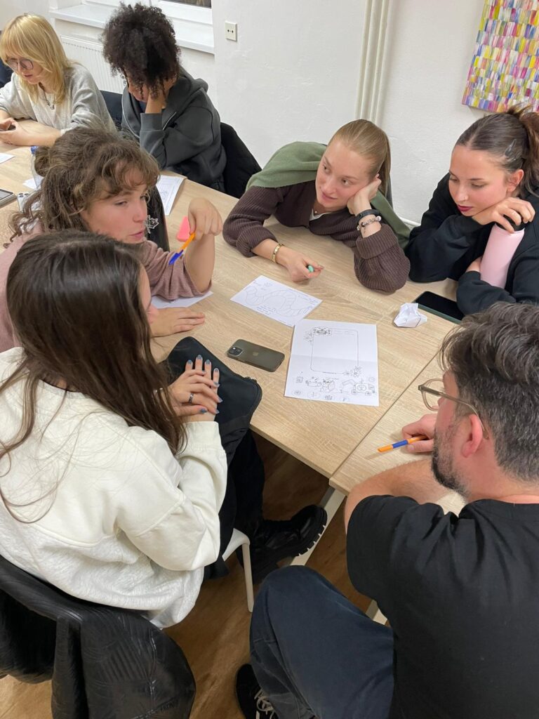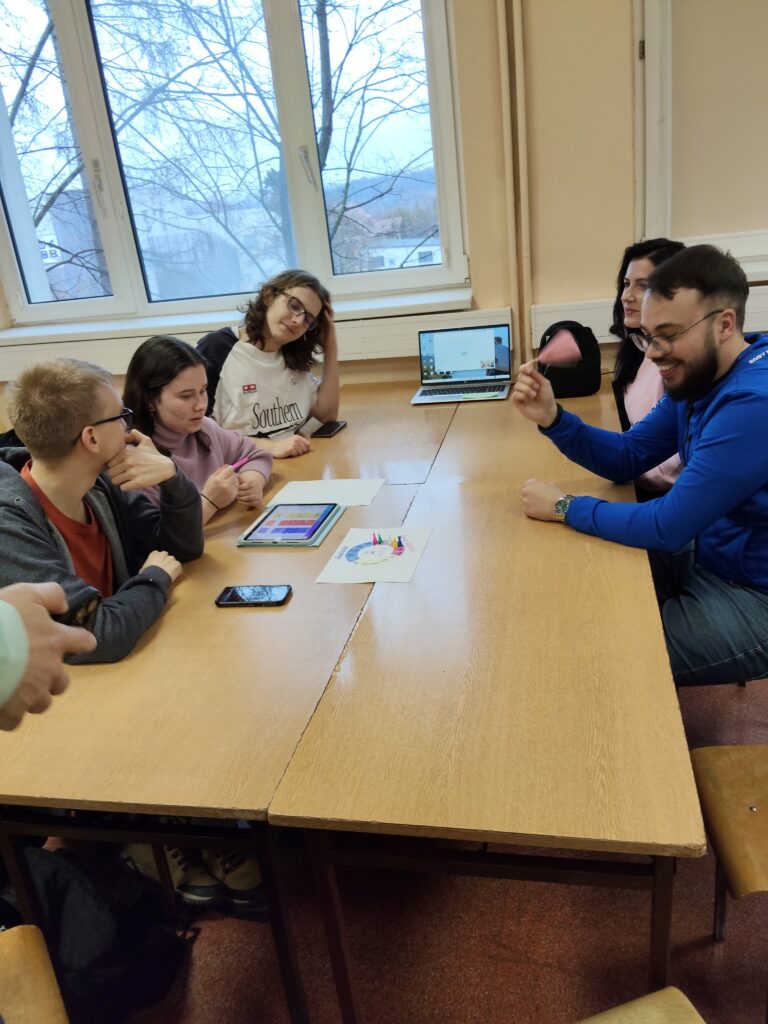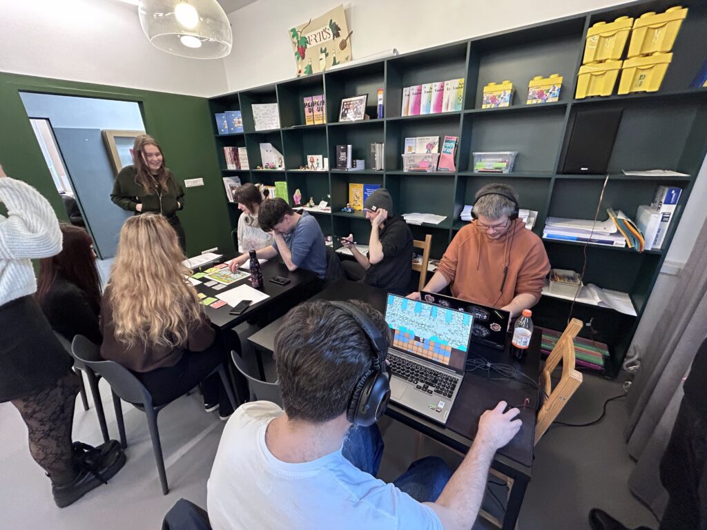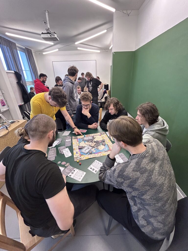 The course combined short theoretical inputs with practical workshops and collaborative development. Students went through the full process of game design: developing an idea, defining learning objectives, designing mechanics, creating prototypes, and testing their games.